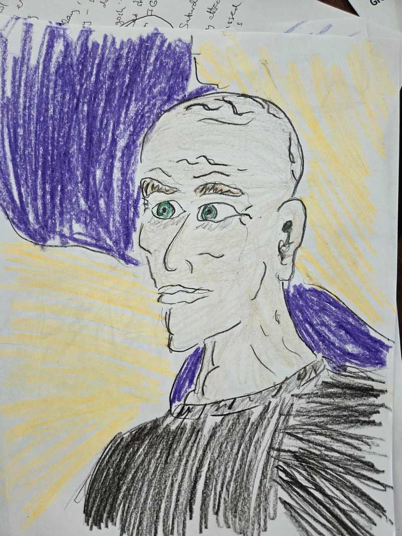 Fourth, and finally, it is possible to see growing insight into the ways social roles and substance use history influence clients' perceived identity. What are these portraits if not glimpses into the roles that each client imagines they are supposed to play on a daily basis? The two portraits presents a choice: play the parts assigned to me or play the part I yearn to play. The intensity of emotion crammed into that choice could fuel at least 10 groups. Fortunately, artistic expression helps "say" things with out needing to utilize words, and that type of silent self-disclosure can sometimes give clients permission to show parts of themselves that they would otherwise keep locked away.